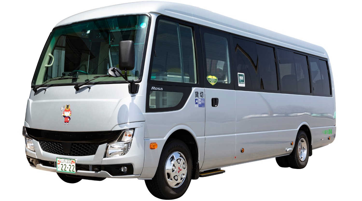 貸切バス 大型スーパーハイデッカーバス 広くてとても便利な車内空間です! ゆったりとしたデラックスな車内。くつろぎのスペースをやさしく包みこむゆったりとした乗り心地。 ●客室から前方視野はバツグン!●開放感あふれる居住空間●冷房付きトランクルーム●大容量トランクルーム(左右貫通) 45~49名乗り ※正座席 TEL/0238-24-3618 FAX/0238-22-4751 お問い合わせフォームへ 中型バス ゴージャスな気分で、ゆったりと旅を満喫! ●全長899cm、定員27名●高速料金は大型料金で経済的です。●シンセサイザーカラオケ3000曲●ボトルクーラー、カーポット●床下貫通トランク●折りたたみ式液晶テレビ付き 27名乗り TEL/0238-24-3618 FAX/0238-22-4751 お問い合わせフォームへ 小型中乗りバス 小旅行はもちろん、各種送迎にも好評! ●学校の部活動などの送迎に●冠婚葬祭の送迎に●ホテル、旅館の送迎に●小旅行の経済的な旅に 22名乗り ※正座席 18名乗り ※正座席